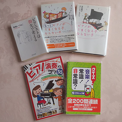 文庫本「ピアニストは指先で考える|ピアノがうまくなる子、ならない子|もっとピアノがうまくなる子、ならない子|運命の力|ピアノがあって、猫がいて|魂のピアニスト|ピアニストは進化する|ちょっとピアノ 本気でピアノ|今日の風、なに色?|のぶカンタービレ!」